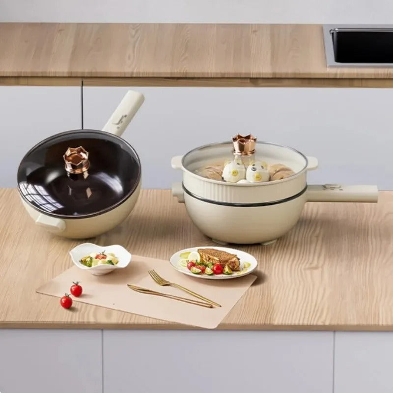 【4L大容量】スチーム機能付き多機能電気フライパン|ノンスティック・ポータブル調理器
